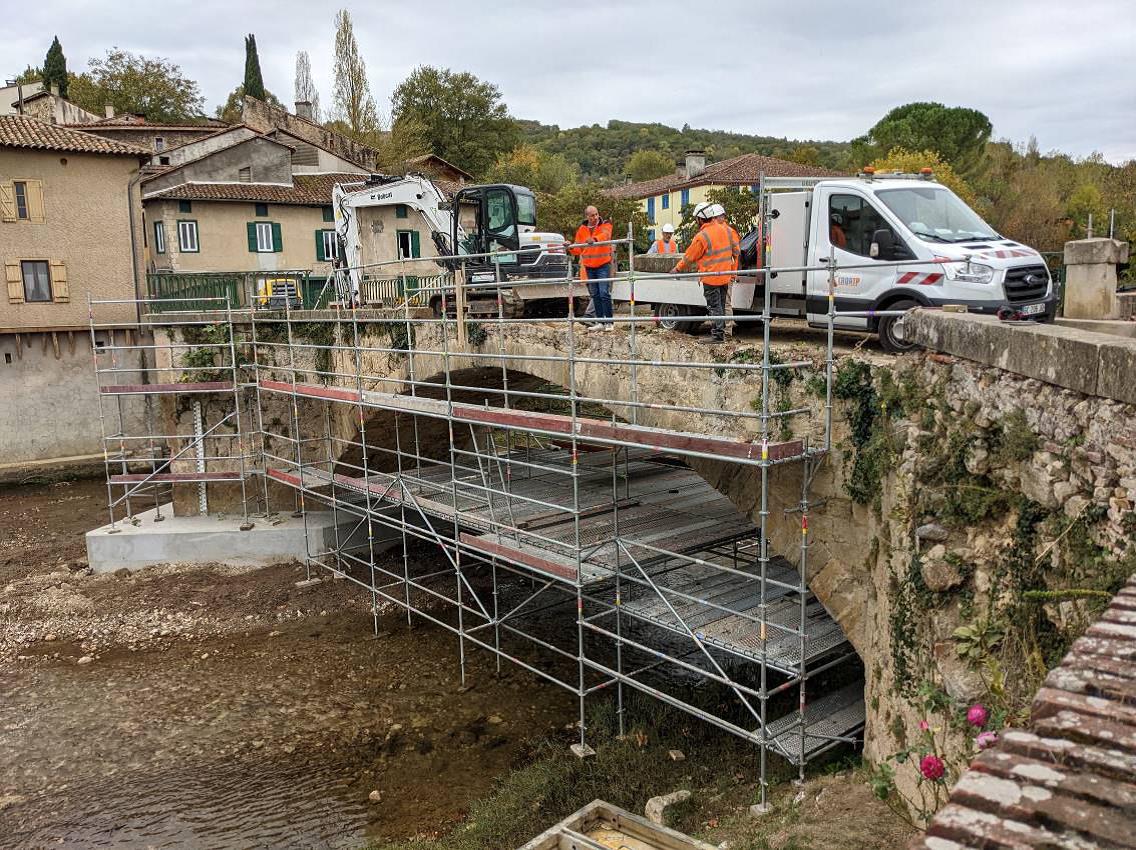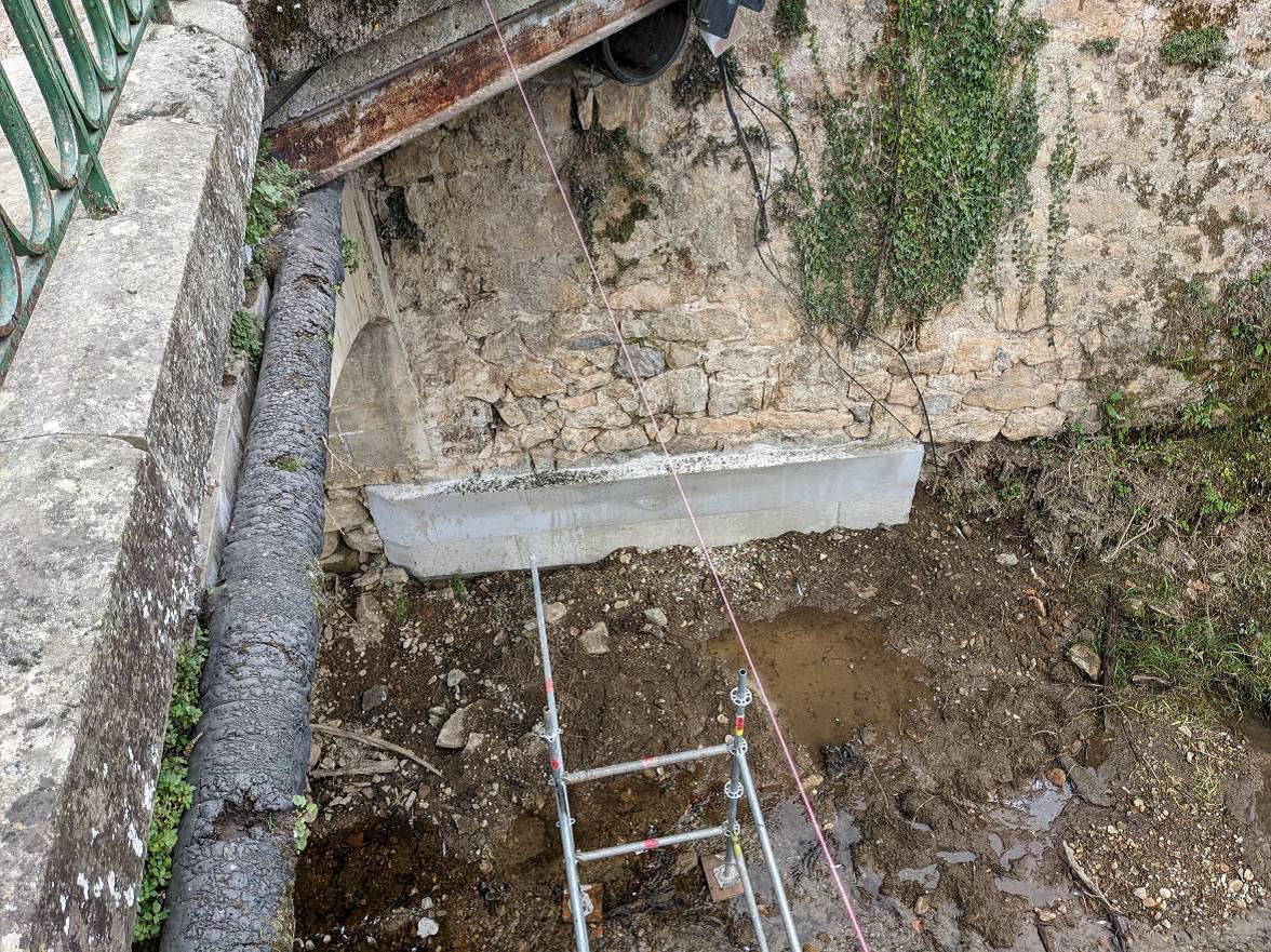 Les premiers travaux consistant à renforcer la pile du pont sont terminés.